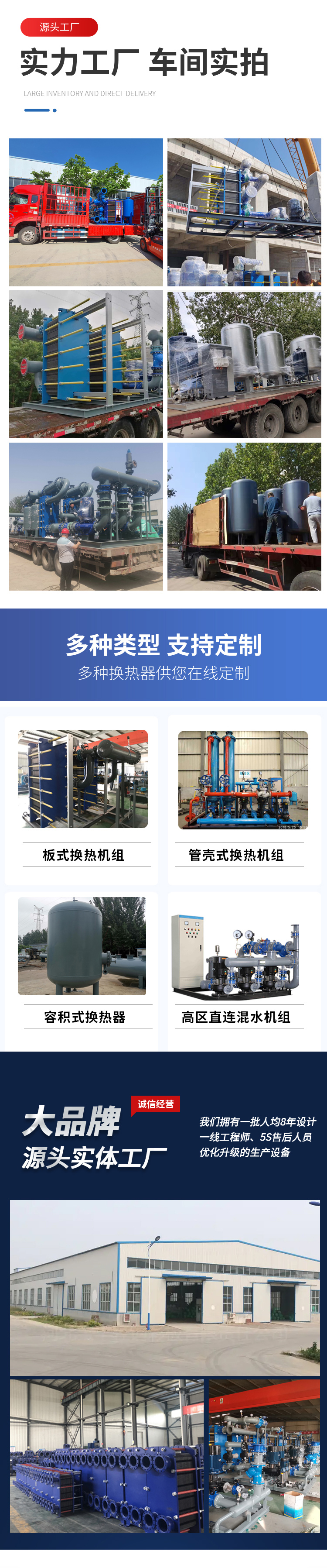 公司長(zhǎng)期供應(yīng)定制:換熱器、換熱機(jī)組、供水設(shè)備、水處理設(shè)備、過(guò)濾除污設(shè)備、水箱、冷卻塔及其他冷暖設(shè)備。公司致力于以政府機(jī)關(guān)、企業(yè)、商場(chǎng)、醫(yī)院、學(xué)校、家庭為一體,提供一站式冷暖/水處理項(xiàng)目解決方案。